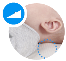 Réduction du risque de tête plate lors des premières semaines : grâce au kit complet, la pression au niveau de l'arrière du crâne sur le matelas est réduite par l'inclinaison.