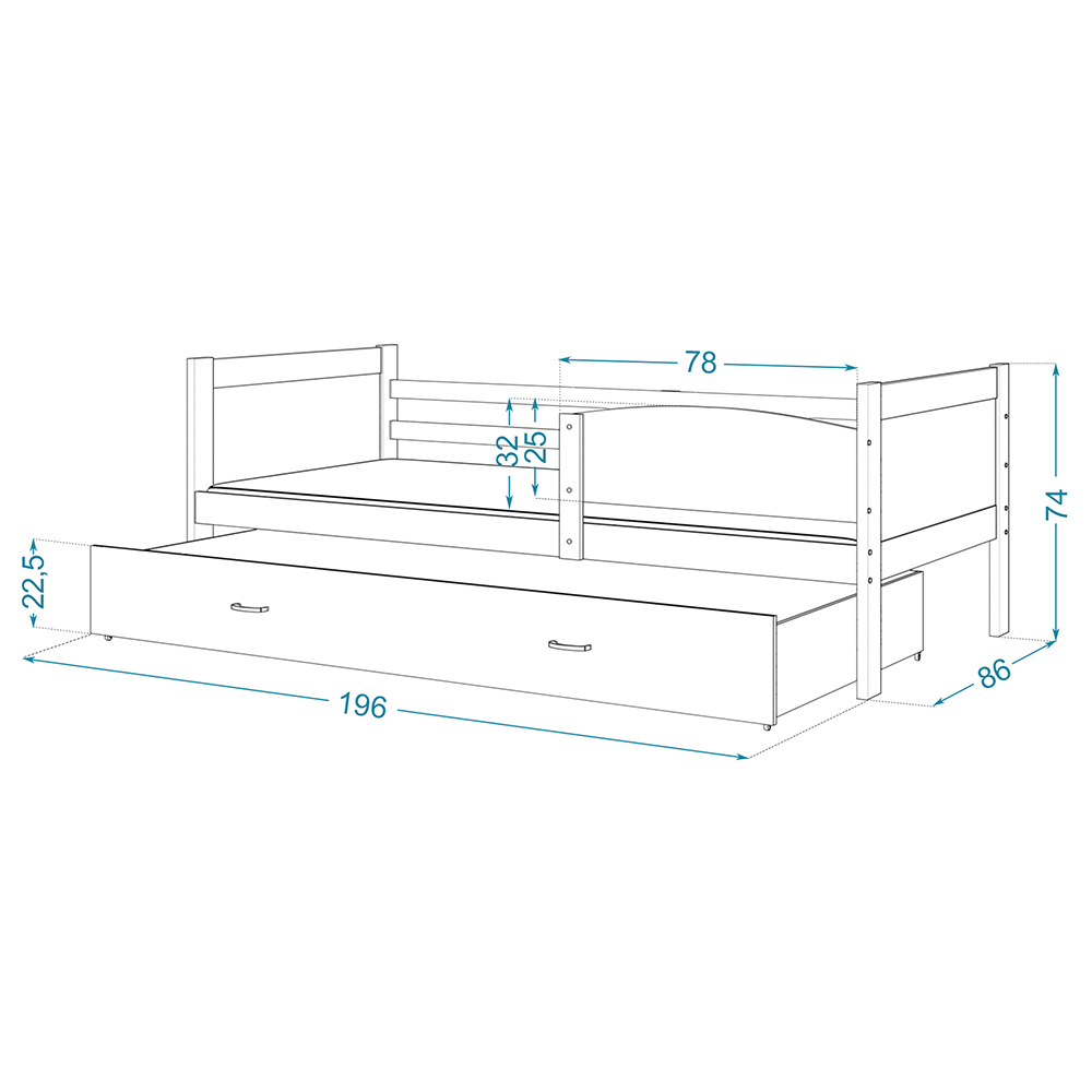 - Dimensions de couchage : 80 cm x 190 cm